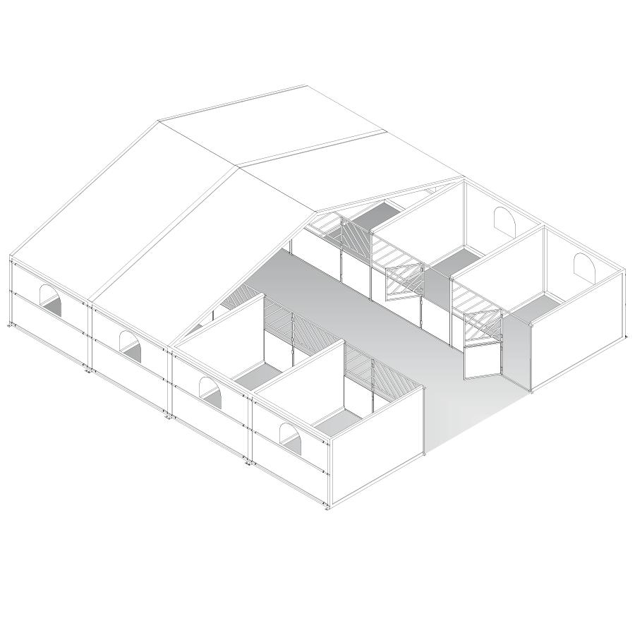 Unsere Zelte sind flexibel aufbaubar und können daher individuell an die gewünschte Boxenanzahl angepasst werden. Grundsätzlich richtet sich die maximale Kapazität nach den gesetzlichen Vorschriften für Notausgänge sowie den örtlichen Gegebenheiten.